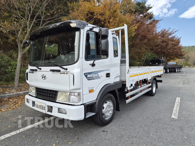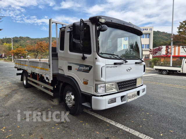 현대 메가5톤 중축 카고 11년7월식 250마력 키로수100만키로 리셋 적재함신품올림(앵글적재함) 바닥철판45c 4.5t 보강완료 갈빗대보강(빔1 잔넬5개 나무보강까지) 경정비완료 포크레인 운반용으로 잘만들어 놨습니다 감사합니다