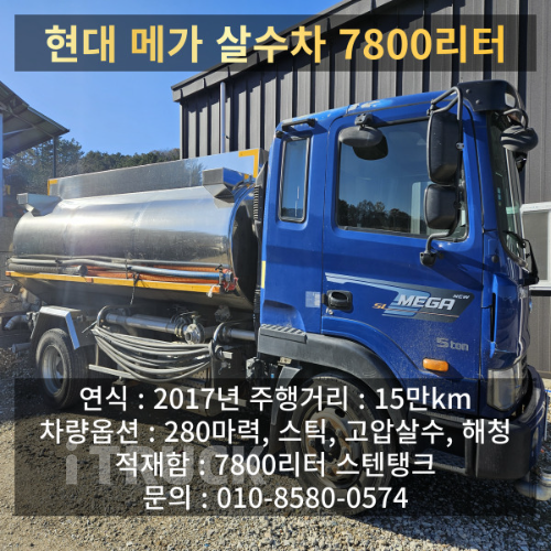 현대 살수차 메가트럭 스텐탱크 7,800L 수동