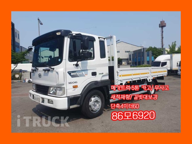 ▶ 86모6920 ◎ 차명 : 메가트럭4.5톤 단축 ◎ 년식 : 2019 년 (2019-03-12) ◎ 주행거리 : 135,225km ◎ 옵션 : 갈빗대보강/단축 4미터60/무사고 ◎ 부가세는 별도입니다. ◎ 가격은 절충이 가능합니다. ======================================================== * 100% 실매물 차량이며 필요하신 사진이 있으시면 언제든지 보내드립니다. * 차량등록증, 성능점검기록부가 필요하시면 FAX로 보내드립니다. * 세금계산서 100% 발행해드립니다. (부가세 별도) * 차량 출고 후 1개월 혹은 주행거리 2000km 엔진/미션 보증 * 은 허위매물이 없습니다. * 합리적인 판매 금액과 친절한 상담 약속드립니다. * 화물차 매입 최고가 약속드립니다. * 항상 투명하고 안전한 거래로 다가가겠습니다.