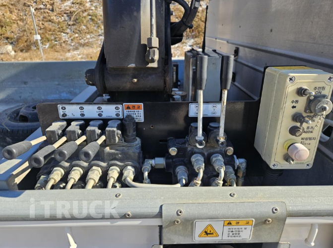 포터2 1톤카고크레인 133마력 1인신조차량 DHS433(동년식) 무선리모컨, 뒷자키장착 (부가세별도)