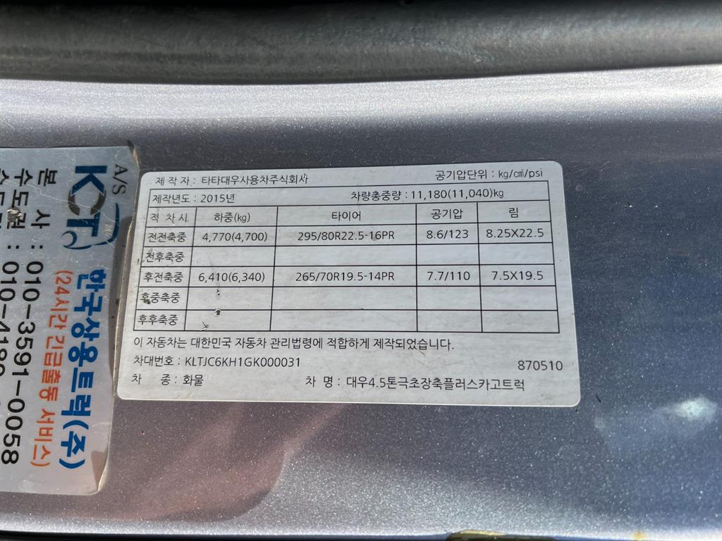 길이8.50m 고하중 수동 대우 프리마 4.5톤 후축윙바디 81만km 길이8.50 높이2.50 폭 2.40 고하중 수동 후방카메라 부가세별도. 감사합니다.