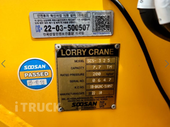 수산 325 5단붐 크레인 / 인증 / 슈퍼캡 열선 통품 씨트 / 크루즈 컨트롤 에어백 / 차선이탈 / 졸음방지 시스템 하이패스 / 바닦 철판 / 풀옵션 엔진 상태 최상급 / 완전 무사고 / 신차급 차량 상태 완전 AA급 / 전국 최저가 차량 부가세 별도