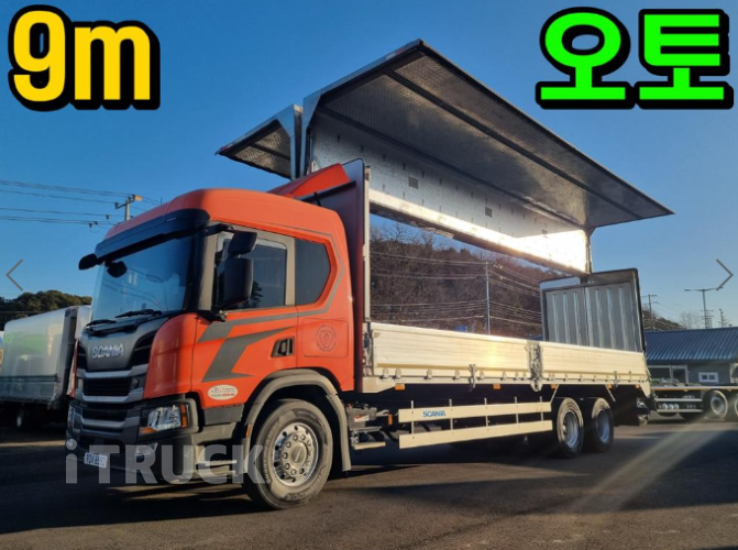8.5톤 스카니아 후축 윙바디 내경9m 폭2.4m 높이2.5m/ 파레트 16장 280마력/ 오토미션 실내 매립형냉장고 부가세 별도
