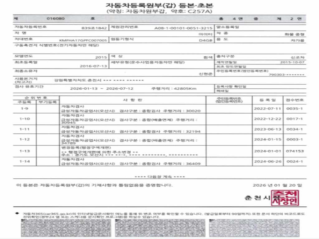 실매물 인증은 차량 실 소유자의 요청에 따라 딜러가 중개 판매 하는 경우 현재 운행 중인 차량일 수 있으며, 실매물 미인증으로 표시됩니다.
