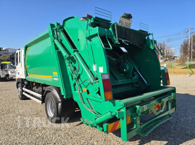 차종 : 메가 5톤 압축진개차(에이엠특장) 연식 : 2018년식 색상 : 녹색 주행거리 : 175,500km 배기량/마력 : 6299cc/280마력 내 / 외관 : 기본 경/정비 및 실내/외 세척 진행중. 기본사양 : 에이엠특장 압축진개차, 부가세 별도.