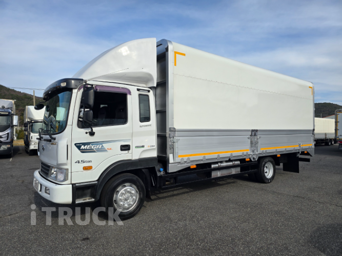 ▣차명 : 메가4.5톤 골드 오토 신품윙바디 무사고 ▣주행거리 : 17만Km ▣마력 : 280마력 ▣변속기 : 자동 ▣윙제원(내경) : 길이(문짝)6.93m 길이(기둥)6.8m 높이2.5m 너비2.34m 흔하지 않은 오토미션에 신품윙바디 장착된 차량입니다. 짧은 실주행거리에 단순교환도 없는 특급차량입니다. 앞타이어 신품100%