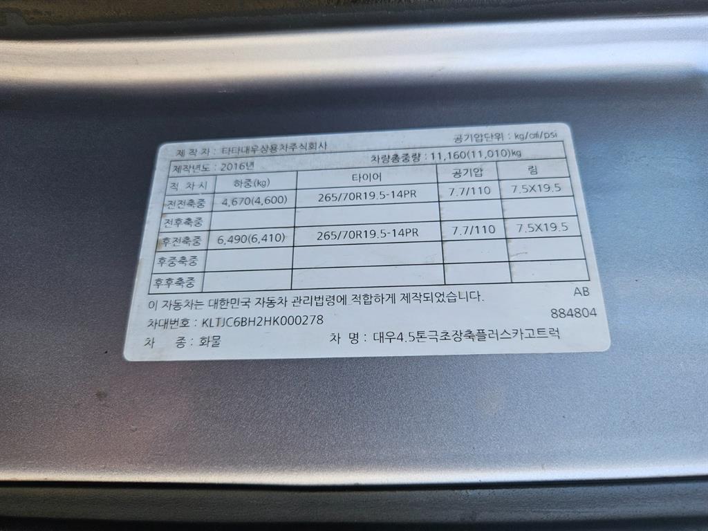 타타대우 프리마 280 윙바디 4.5톤 수동