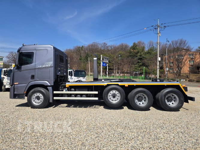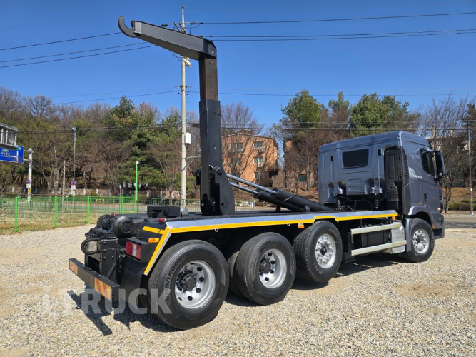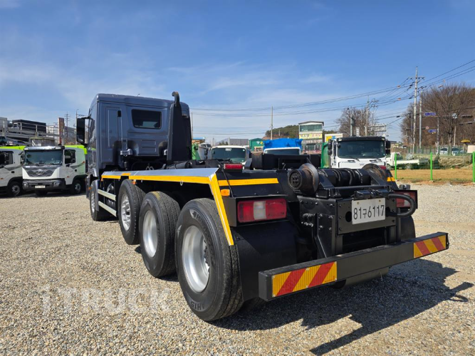 1인신조, 원쓰리, 520마력, 수동미션, 하대 6000*2300*2000, 축간거리6,300mm, 박스없이 검사 가능합니다, 암롤박스 별도 판매(박스 사이즈5950*2950*2060) 부가세별도 차량번호:81구6117