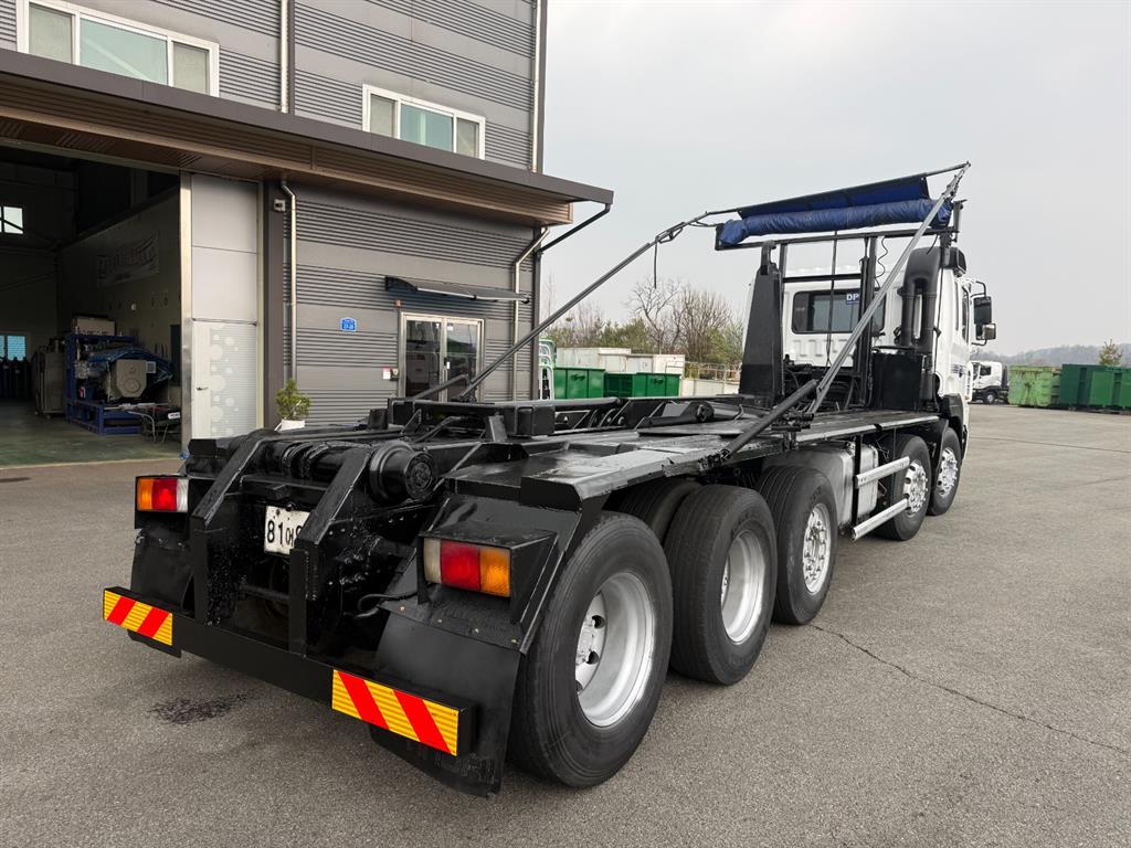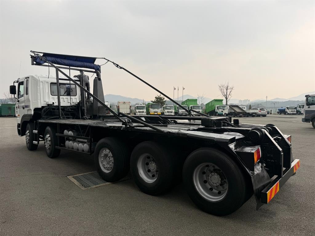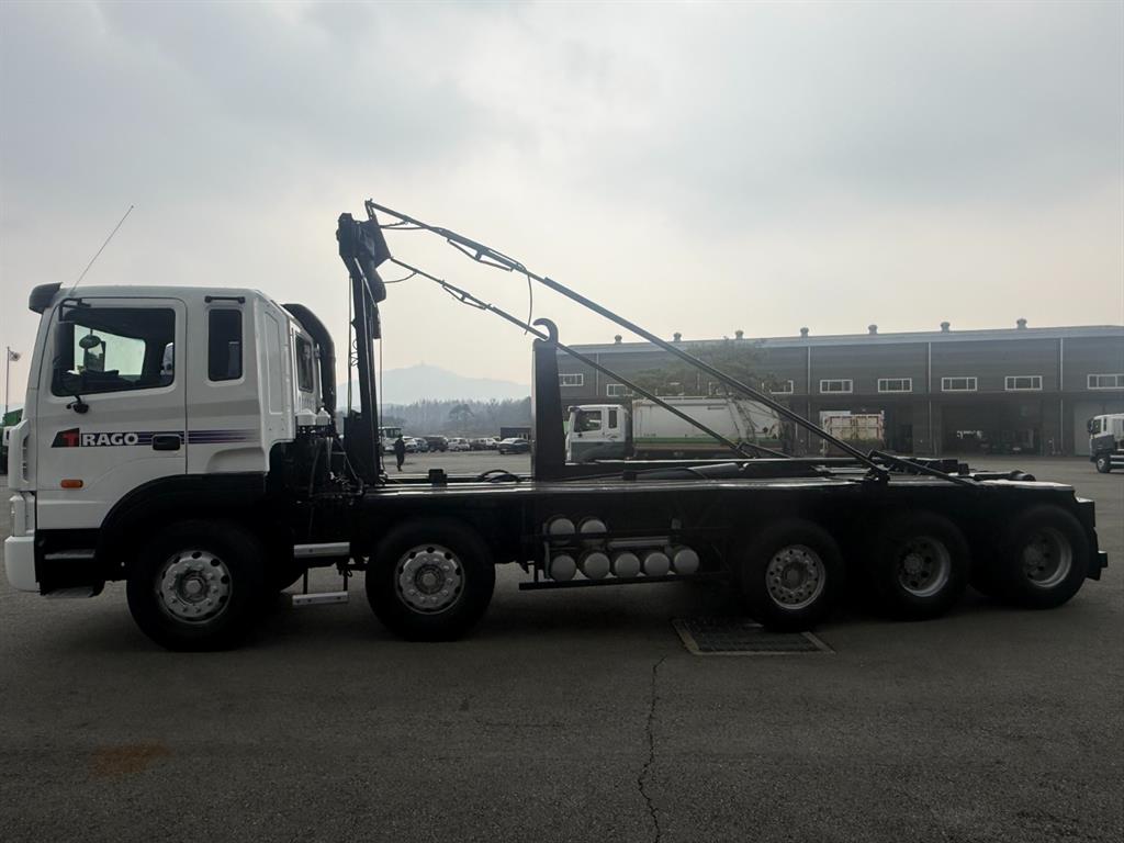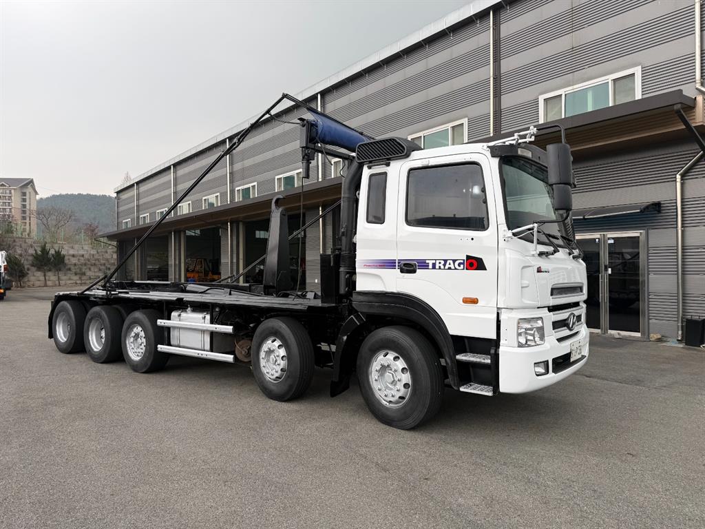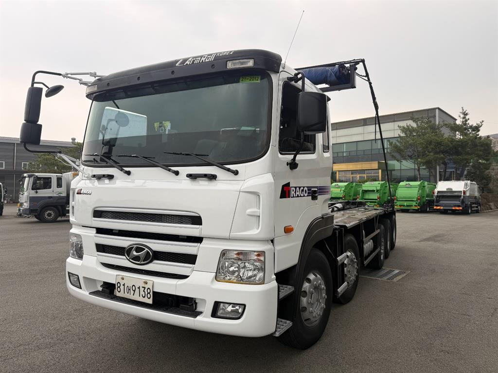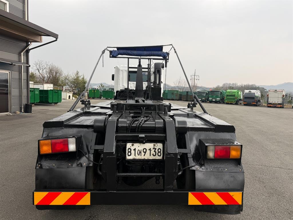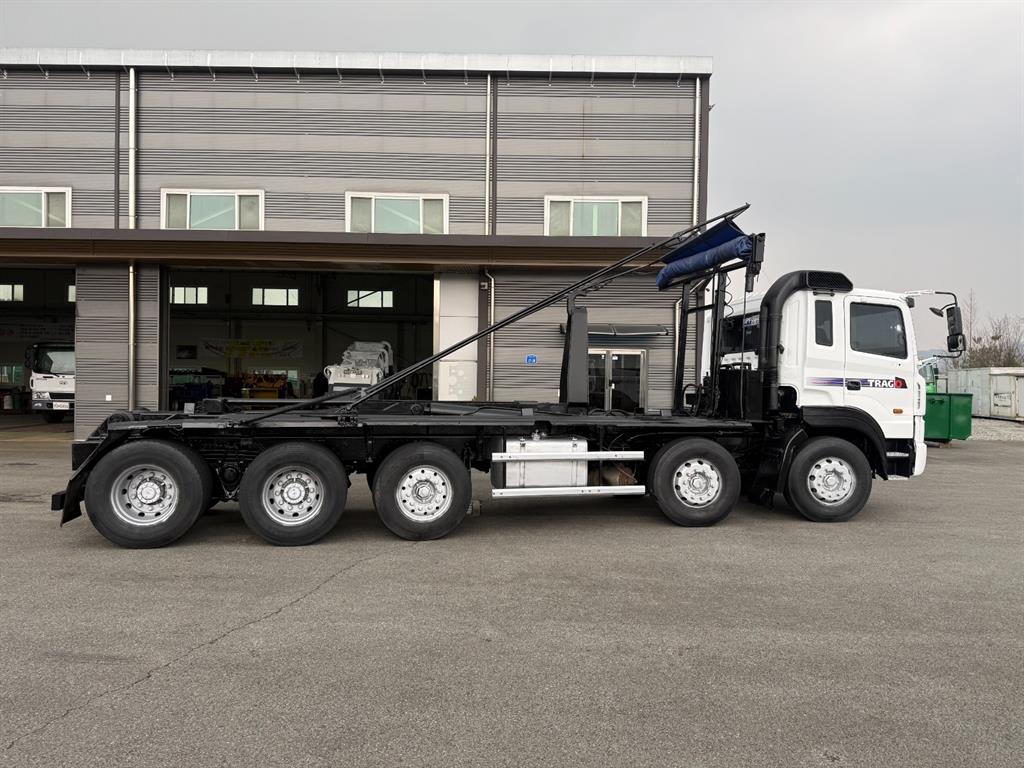 트라고 23톤 2+3 암롤트럭 2007 연식 78만주행 440 마력 축간거리 7730 하대길이 6900 암롤박스없이 검사 가능 매연여과장치 설치됨 전화상담 010 - 9157 - 8944