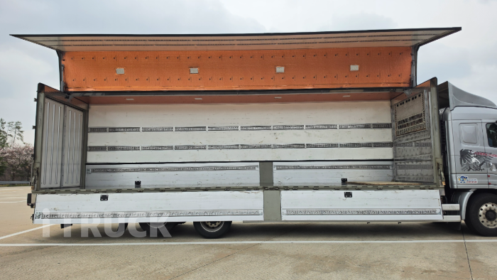 25년식 맥쎈 후축 써브냉동윙바디 - 25년 4월 8.5톤 등록 - 13만km 주행 - 320마력 / 오토, 리타더 - 윙길이 9m70 : 16 파레트 / 써브형 항온항습기(하부형) - 윙 보냉작업 / 스텐 바닥 제작 - 무시동에어컨/히터, 냉장고, 원격시동 - 쎈링크, 원격시동, 기름통 400L *부가세 별도입니다. (금액 협의) **동선은 경기-제주 입니다.