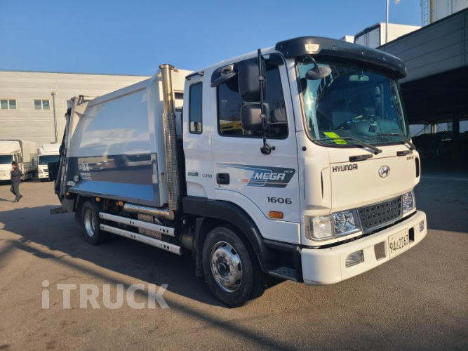 현대 압축진개 메가트럭 5톤 밀판식 배출