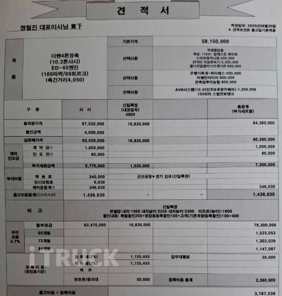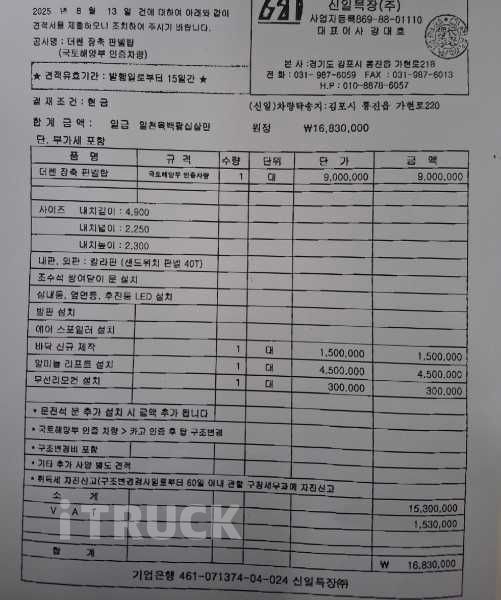 2025년 9월 더쎈 4톤 탑차 186마력 오토미션 리프트 장착 1만km 주행 광고가 : 6,900만원 차차 상담 조경제
