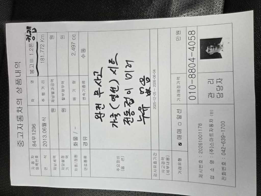 실매물 인증은 차량 실 소유자의 요청에 따라 딜러가 중개 판매 하는 경우 현재 운행 중인 차량일 수 있으며, 실매물 미인증으로 표시됩니다.