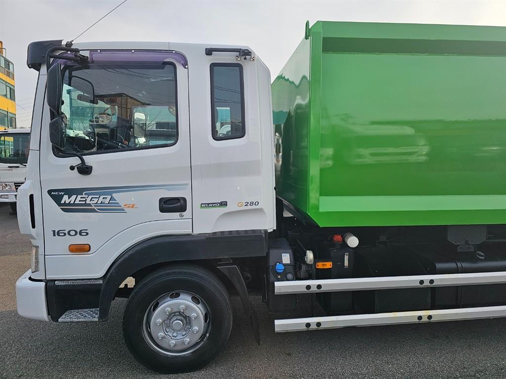 ...메가트럭 삼능 5.8톤 압착진개차 ...280마력 / 113,000km주행 ...덤프식 배출 ...부가세별도
